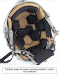 After the protection performance of helmets has reached a certain level, the pursuit of comfort has become the industry's new goal, and FMA has launched the "Yunlin" ultra-comfortable double-layer memory foam helmet pads, with a hexagonal design language that focuses on wrapping the head in a complete package. All-round protection of the head at the same time to provide absolute comfort wearing feeling, double-layer sponge design a layer of soft memory foam a layer of slow rebound sponge. The layer close to the head is made of mesh fabric to ensure breathability, while the inner layer is made of fleece to enhance stability. In addition to ensuring excellent impact resistance, it also ensures maximum comfort for the user. The "Yunlin" super comfortable double-layer memory foam helmet pads are compatible with most high-cut helmets, and with the Wendy's FIT knob suspension can form the most comfortable helmet system at present. The seven uniquely designed helmet pads are perfectly matched to the user's personalised comfort.